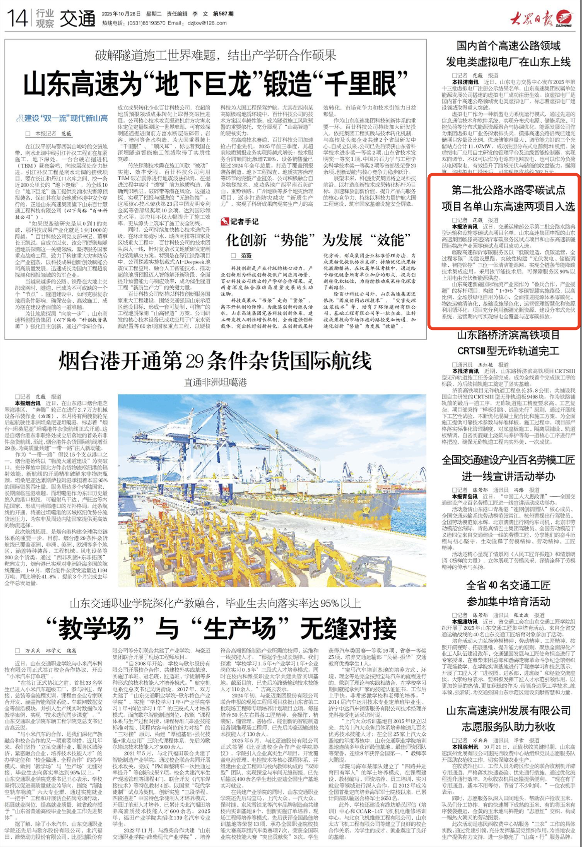 【大众日报】第二批公路水路零碳试点项目名单山东高速两项目入选