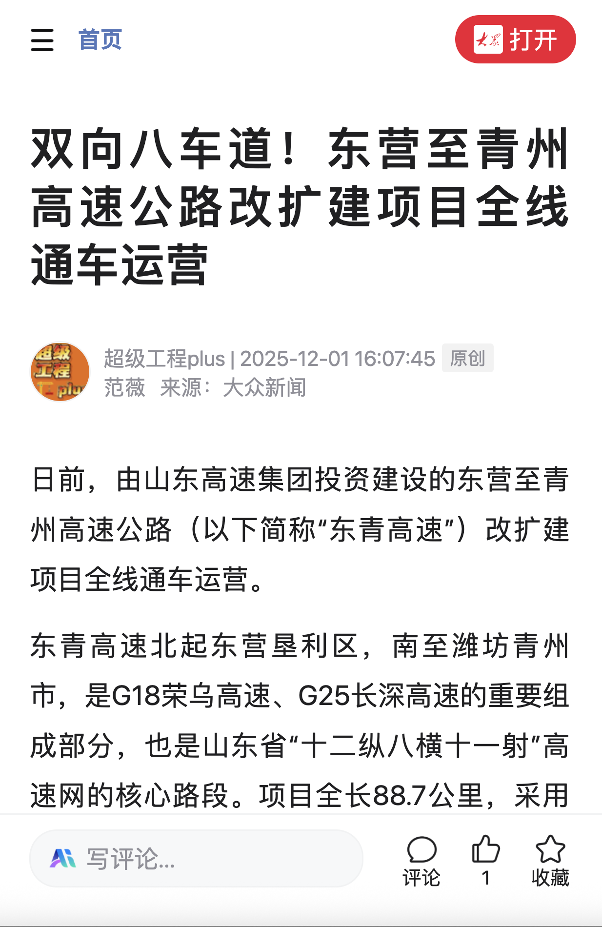 【大众日报】双向八车道!东营至青州高速公路改扩建项目全线通车运营