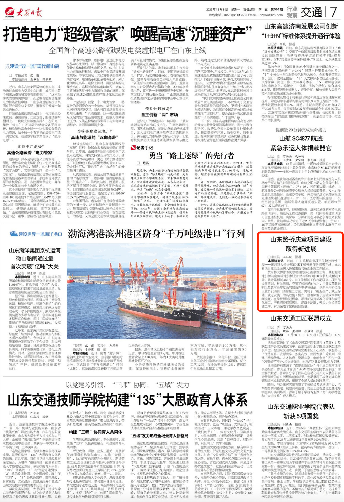 【大众日报】山东路桥庆章项目建设取得新进展