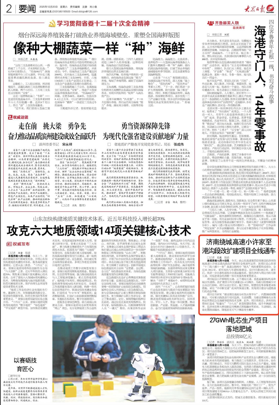 【大众日报】济南绕城高速小许家至港沟段改扩建项目全线通车